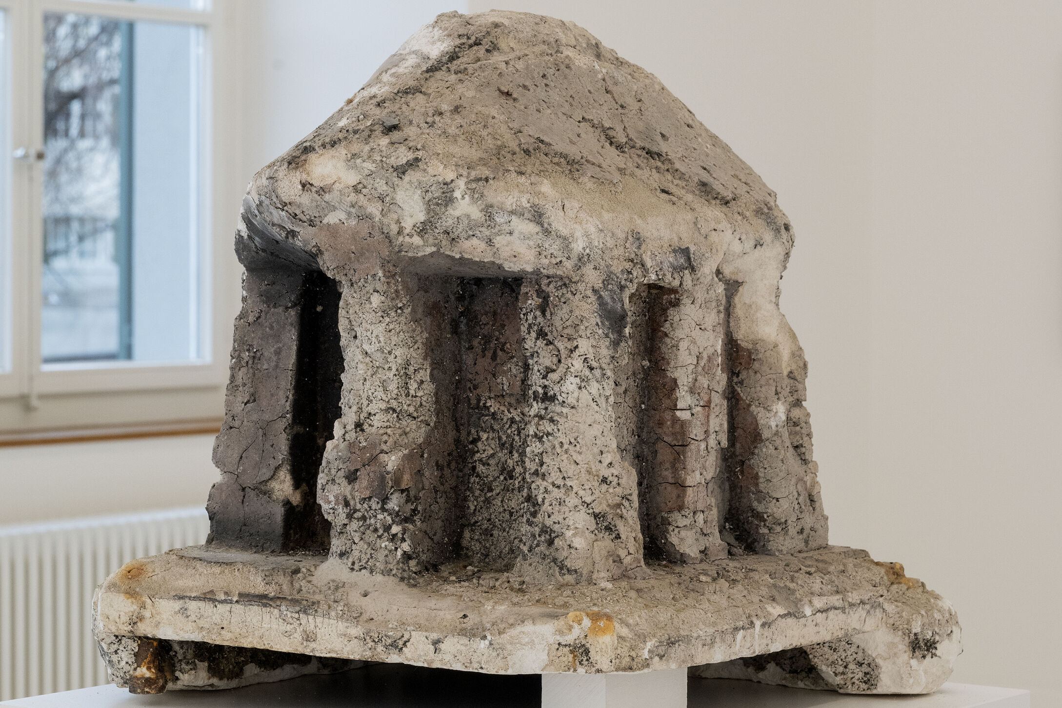 Die Bildhauerei brilliert häufig durch physische Präsenz und Monumentalität. Doch ist sie als künstlerische Disziplin nicht an wuchtige Formate gebunden, sondern erscheint höchst vielfältig. Ausgehend von der teilweise zerstörten Plastik Schildkrötentempel (1966) von Peter Storrer wird die zeitgenössische Bildhauerei im Dialog mit derjenigen des 20. Jahrhunderts im Klein- und Miniaturformat thematisiert. Im Fokus steht die Ästhetik des Formats selbst, von klassischen Materialien wie Bronze, bis hin zu experimentellen Medien der aktuellen Objektkunst. Die Ausstellung ermöglicht eine Betrachtung kleiner Objekte und zeigt ihren künstlerischen Wert: Viele Kunstschaffende verwenden es als Möglichkeit, um neue, experimentelle Ansätze für ihren Arbeitsprozess zu finden. In den Werken von rund 50 Künstlerinnen und Künstlern zeigt sich eine unmittelbare, poetische und intime Form der plastischen und skulpturalen Untersuchung. Die Grösse in der Kleinheit erinnert uns an die Schildkröte, seit Urzeit im Fricktal nachgewiesen und heute bedroht, der wir hier unsere Hochschätzung entgegenbringen.